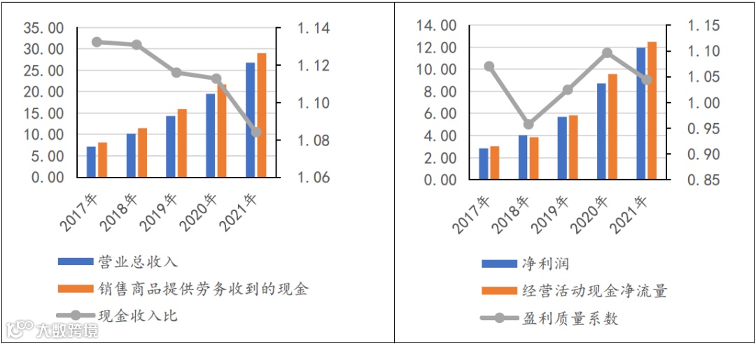 现金流方面,近五年健帆生物的现金收入比始终维持在1以上;盈利质量系数基本也在1以上。