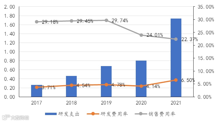 进一步从健帆生物的研发支出、研发费用率、销售费用率角度予以判断。