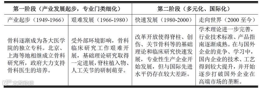第一阶段,在国家政策的支持下,我国骨科医疗器械产业形成一定的规模制造,专业门类也得以细化。但受限于外部环境的整体发展阶段,骨科医疗器械行业的产业化发展缓慢,没有形成真正的规模化生产。