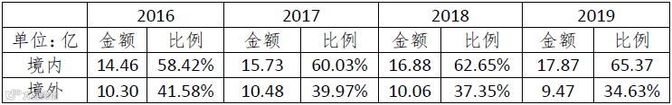受益于国内严格的准入政策,公司营收在境内保持平稳增长趋势。而境外竞争加剧导致公司境外收入减少。但整体来看,公司整体营收水平仍保持平稳,但同比增速下降。