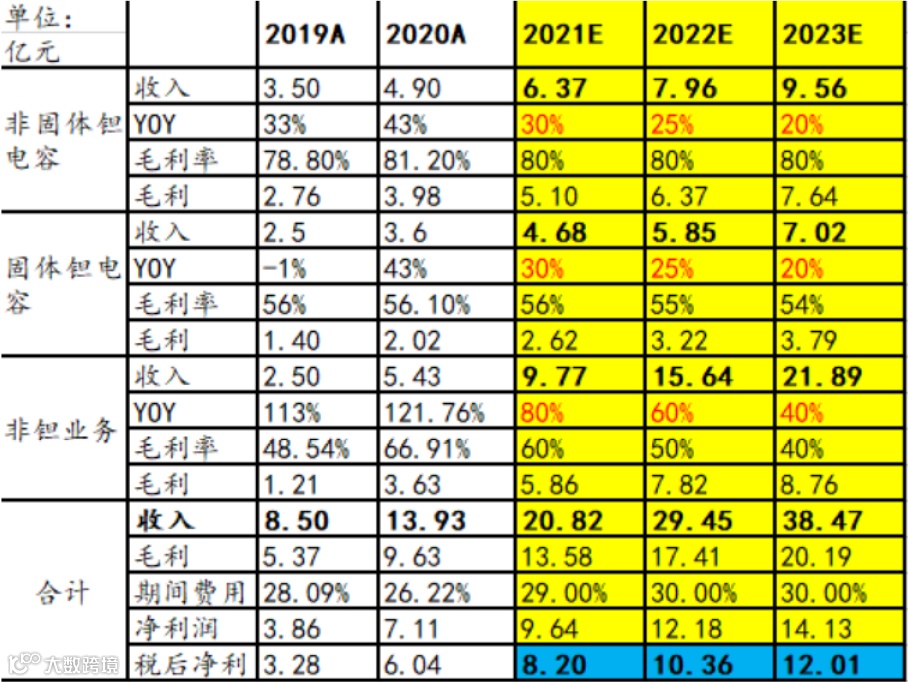 公司的非钽业务,产品品类繁多,各产品营收基数小,受外部影响较难预测,因此,增长驱动板块,我们重点聚焦公司钽电容业务。