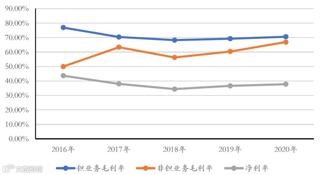 图表:公司钽业务、非钽业务毛利率,净利率