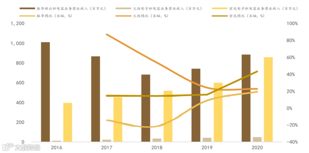 我们认为,公司钽电容器业务的增长主要来自我国军费支出增长及市场份额提升两个方面。考虑军工市场的封闭性,军费支出增长给公司(龙头)带来的增长确定性较高;考虑双寡头格局,公司虽有赶超振华科技之势,但通过市场份额提升驱动增长,仍存在较大难度。