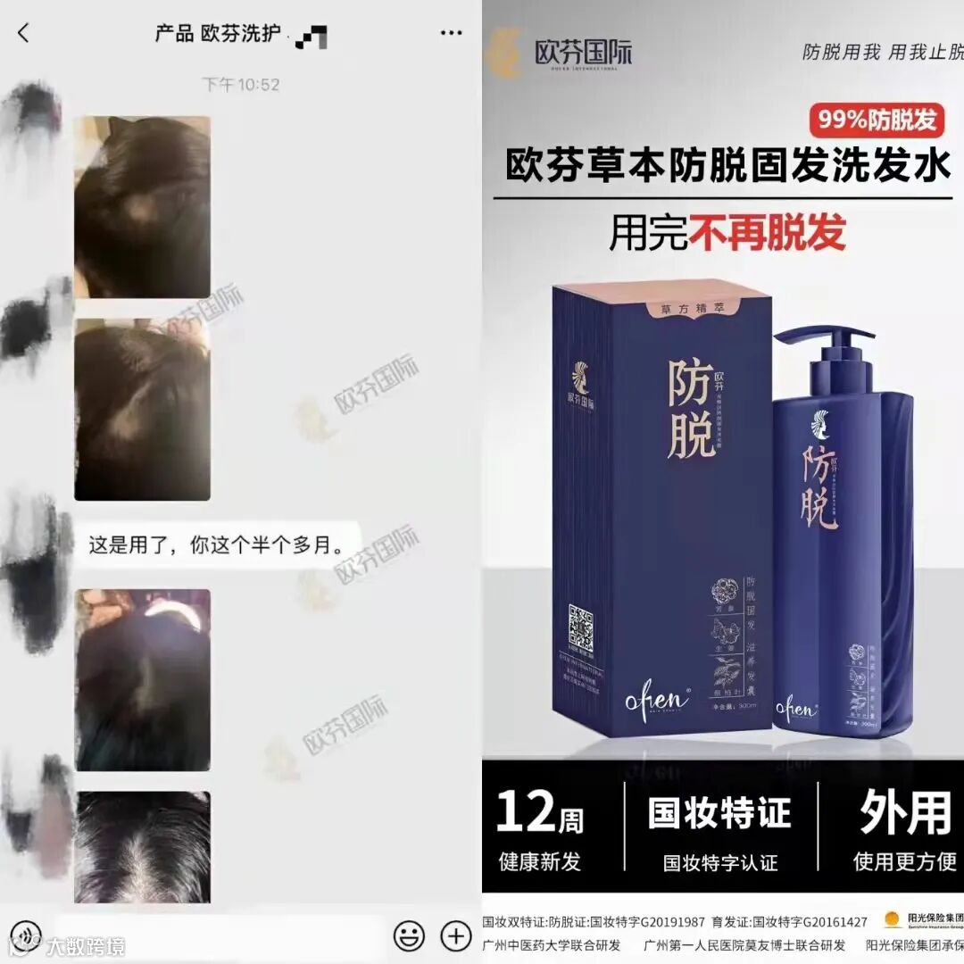 欧芬防脱固发洗发露,是有国妆特征加持的产品,国妆特字:G20191987,我国法律规定,像育发防脱 防晒等9类特殊用途化妆品必须要有国妆特字批号,才能进行销售。国妆特字申请、备案时间较长,需要2.5年-3年时间,期间国家食品药品监督管理局会针对产品找到测试群体进行专业的人体测验,测试期间必须零投诉率,零副作用,并且各项指标达到检测标准,才能予以认证,相对比较安全,有效。并且是有钱拿不下来的,必须厂家规模和产品质量都要达到一定程度才会批证的。