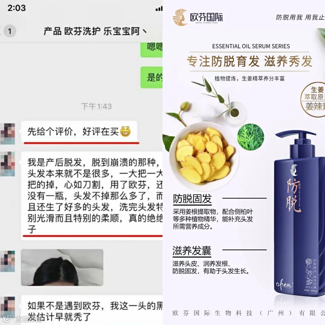 这些反馈全部来自我们线下客户的真实用完的感受,和之前的去屑是同系列产品,还是那句话,说的在天花乱坠,一切都要回归在效果上能真的帮助客户解决问题,疫情以来,多少产品都不在了,欧芬一直在,是因为老客户的一直认可回购,脱发的问题往往不是发生了在去补救,而是在现代人生活背景下,我们每个人可能或多或少的都存在一些头皮头发问题,一定要用好的洗发水,好的洗发水带来的是头皮头发持续的愉悦,而不是一直换来换去,头皮也会需要个适应的阶段,尤其一些头皮敏感的客户,频繁换洗护,可能会加重问题,挑几款好的坚持去用就可以了,欧芬,相信您用了就爱上。
