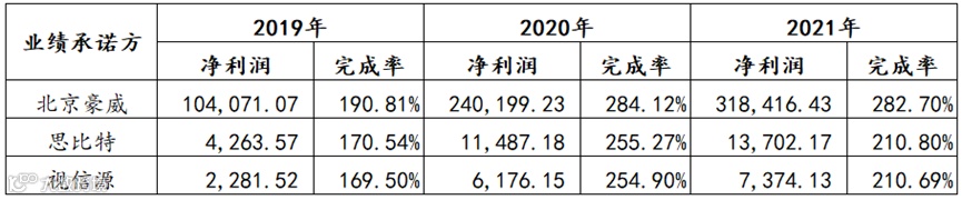实际上,北京豪威、思比特和视信源三家公司在三年业绩承诺期,业绩完成情况相当“靓丽”,具体如下: