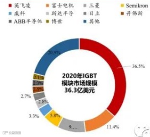 图表:2020年全球IGBT模块市场格局(单位:亿美元)