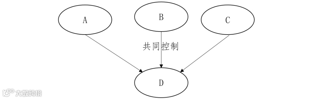 例如:A、B、C三个企业共同控制D企业,从而A和D、B和D及C和D成为关联方关系。如果不处在其他关联方关系,A和B、A和C及B和C之间不构成关联方关系。