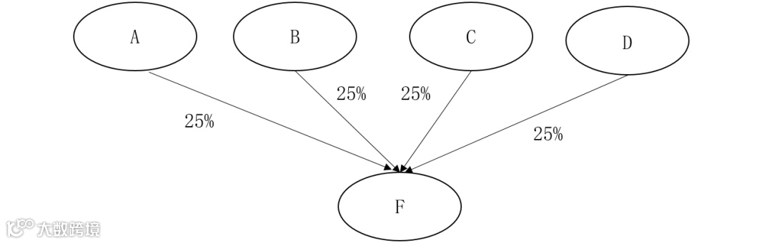 例如:A、B、C、D企业各占F企业表决权资本的25%。按照合同规定,投资方各方按照出资比例控制F企业,由于出资比例相同,F企业由A、B、C、D企业共同控制。在这种情况下,A和F、B和F、C和F以及D和F之间构成关联方关系。