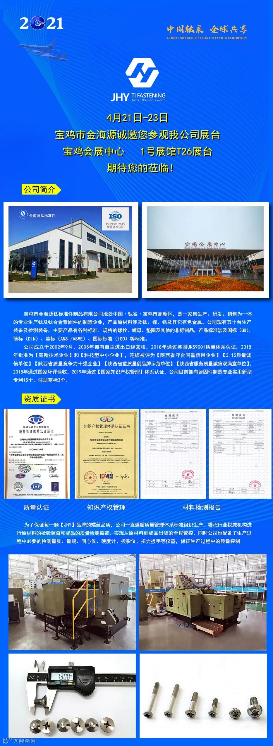 2021年4月21日-23日,金海源与您相约第四届钛博会。