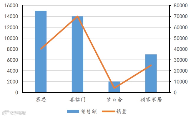 图表:2019双十一单月床垫品牌销售情况(万元)