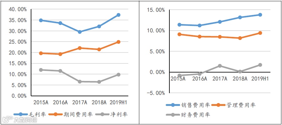 图表:公司毛利率、净利率及期间费用率