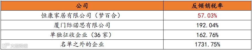 图表:反倾销税率明细情况