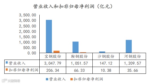 图表:四大钢厂营收、扣非归母净利润对比