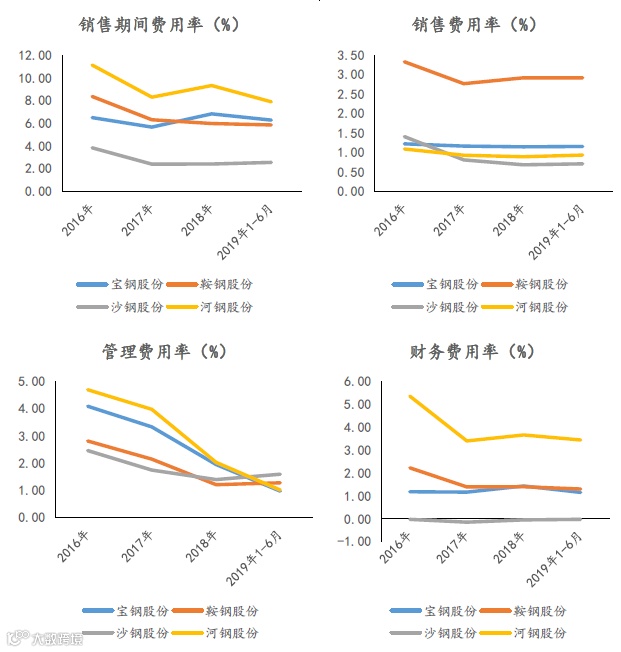 图表:四大钢厂期间各项费用率对比