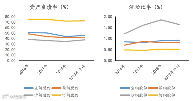 图表:四大钢厂资产负债率、流动比率对比