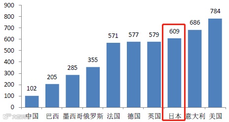 图表:主要国家千人汽车保有量