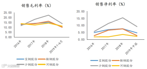 图表:四大钢厂毛利率&净利率对比