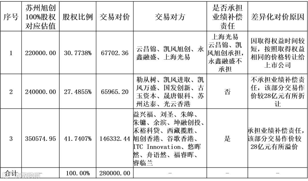 本次交易,共18名交易对方(具体如上表)进行业绩承诺。相对于一般的重组交易,本次交易的业绩补偿设置了“调整系数”,若苏州旭创难以完成承诺业绩,将面临金额更大的业绩补偿。