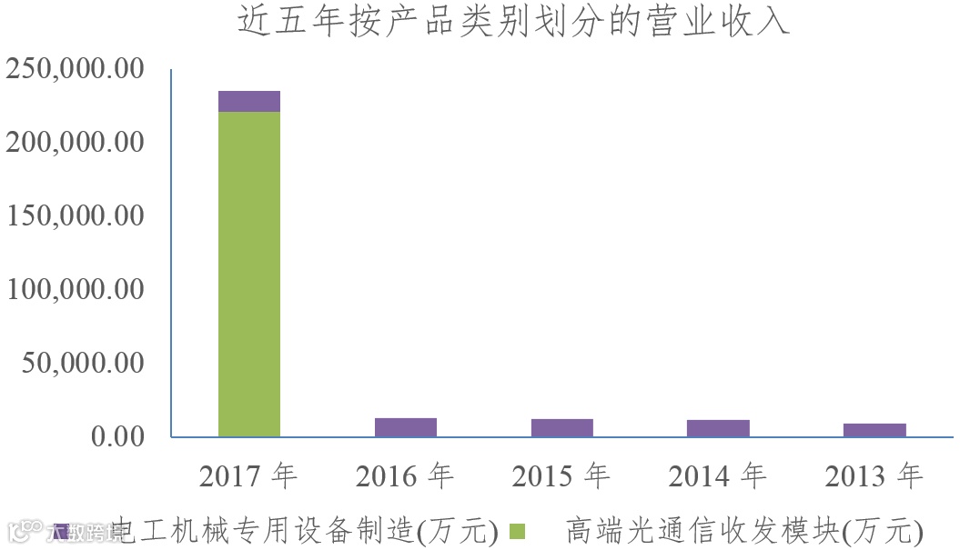 在中际装备未并购苏州旭创前,中际装备的营业收入一直未超过1.5亿元,自2017年完成并购后,中际装备营业收入总额增至23.57亿元,较2016年增长近17倍。
