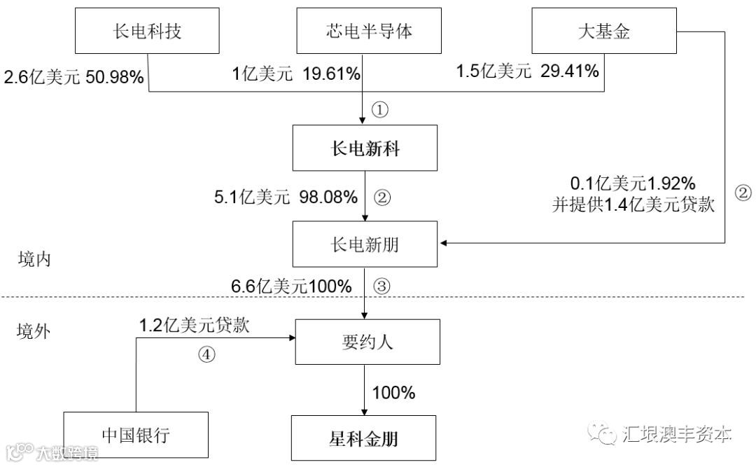 并购基金长电新科设立长电新朋,由大基金向长电新朋提供1.4亿美元的可转债;此后,再由长电科技作为担保方,通过内保外贷向JCET-SC(Singapore)Pte.Ltd.提供1.2亿美元贷款。至此,7.8亿美元资金问题获得解决。