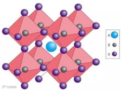 钙钛矿指一类陶瓷氧化物柔性材料,呈现立方体晶形。钙钛矿光伏材料分子式为ABX3,A位离子为大半径阳离子,B位离子为小半径阳离子,X位离子为卤素阴离子。当太阳光照在钙钛矿材料上时,太阳光强度大于禁带宽度时,钙钛矿吸收光子产生电子-空穴对。被激发的电子从价带跃迁到导带上流向电子传输层,空穴流向空穴传输层,电子与空穴流动起来形成外部电流,实现光能向电能的转换。