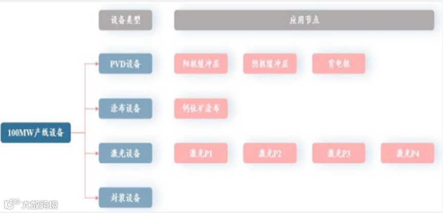 钙钛矿太阳能电池主要设备包括镀膜设备、涂布设备、激光设备、封装设备为钙钛矿电池制备四大设备,其中,镀膜设备价值占比约50%。