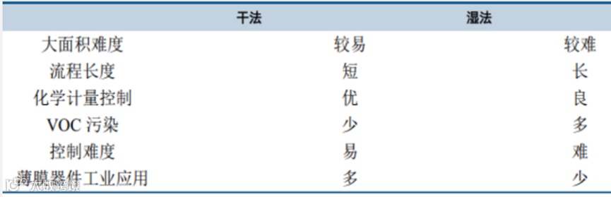 针对钙钛矿电池最核心的工艺环节(钙钛矿吸光层的制备),主要包括旋涂法以及气相法。旋涂法又称湿法,气相法又称为干法。