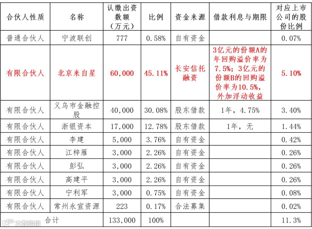 ☟ 无锡联创的资金来源、合伙份额比例与对应上市公司股份比例如下表: