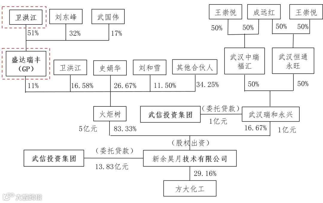注:① 本次交易完成后,新余昊月成为上市公司新的控股股东,卫洪江成为上市公司新的实际控制人。②上图中红色虚线框中的主体,是本次交易中为新余昊月13.83亿元的委托贷款提供信用担保的主体。