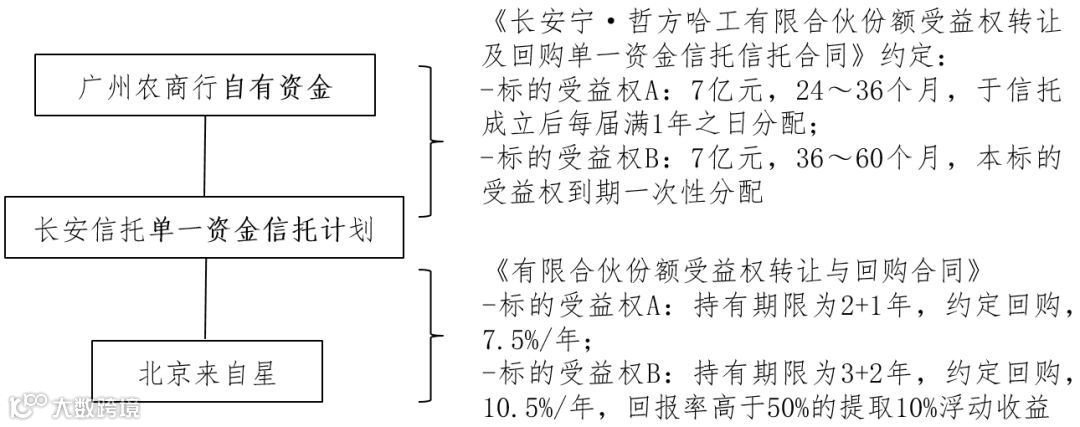 北京来自星为无锡哲方、无锡联创分别出资14亿元和6亿元,合计20亿元的资金均来自长安信托的信托计划贷款。根据资管新规第五条“投资者不得使用贷款、发行债券等筹集的非自有资金投资资产管理产品”。若在资管新规下,无锡哲方、无锡联创的交易结构须进行调整,长安信托可变更为为无锡哲方、无锡联创提供并购贷款,按照上表的情况和资管新规的限制,长安信托可为无锡哲方、无锡联创分别提供不超过7.18亿元和7.3亿元的并购贷款。