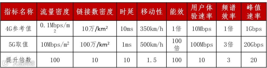 5G、4G相关技术指标对比情况