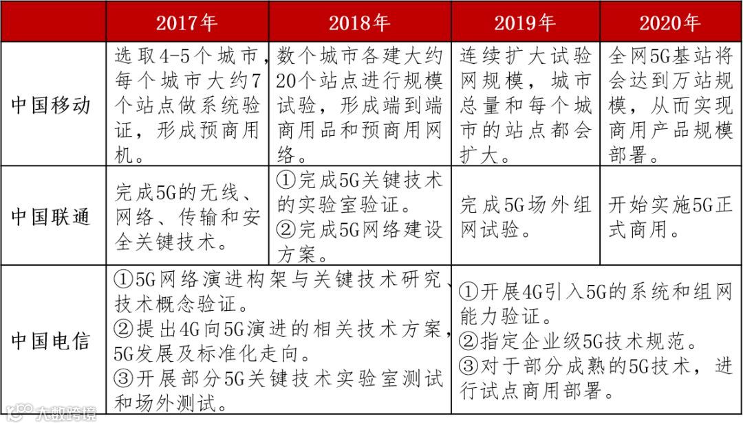 中国三大运营商5G发展规划