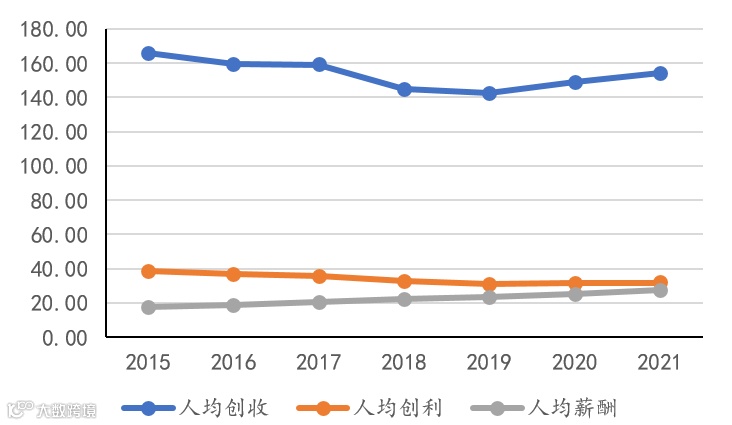 人均层面,海康威视的人均创收、人均创利及人均薪酬增长并不明显,这主要与海康威视的业务模式有关。海康威视业务围绕“视频监控工程”,业务具有“产品+工程”、“项目制”等属性,该类业务的规模效应较低,业务发展依赖“堆人式”增长。
