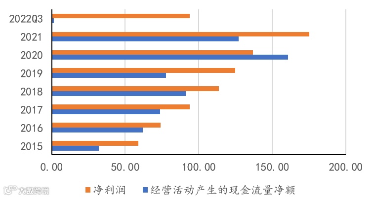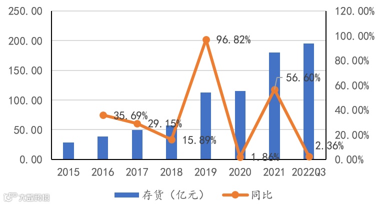 从经营现金流净额、净利润来看,海康威视的净利润“含金”量不足。2015年至2022Q3,海康威视经营现金流净额合计为624.42亿元,净利润合计为870.90亿元,“含金”比率为71.70%。这意味着需要重点关注海康威视存货、应收账款的减值风险。
