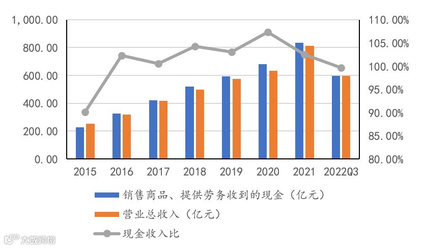 从现金收入比来看,海康威视的销售回款情况表现较好,现金收入比基本维持在1以上。