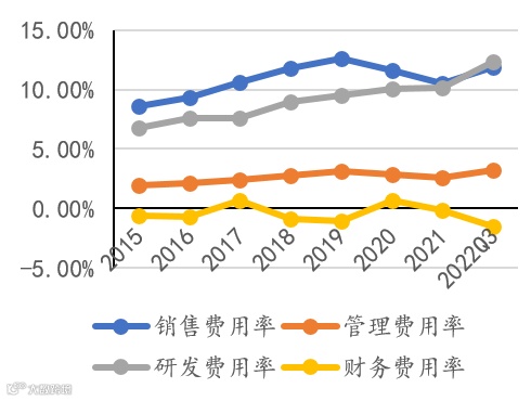 2021年,海康威视的毛利率有所降低,但通过控费,业绩表现依然不错。2022年,海康威视的盈利能力出现大幅下滑,净利率同比下降5.81%,净资产收益率同比下降14.93%,可谓是盈利能力“断崖式”下跌。