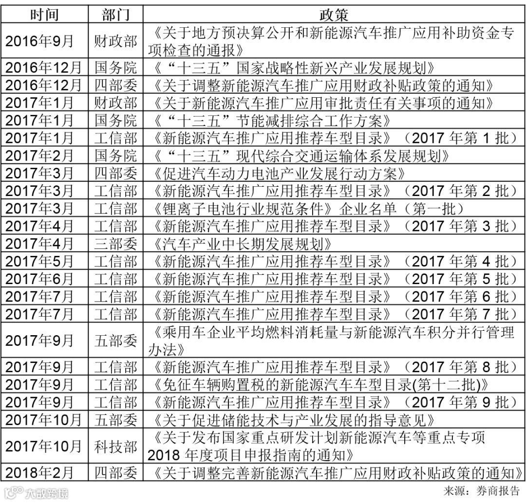 图表1:2016年7月至今涉及新能源汽车和锂电池产业的主要有关政策