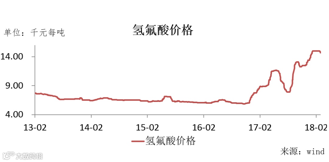 ①成本上涨推动价格传导:六氟磷酸锂制备的主要原料氟化锂、五氟化磷,都需要用到大量的氢氟酸(氟化锂由碳酸锂或氢氧化锂与氢氟酸反应得到,五氟化磷由五氯化磷与氢氟酸反应得到),氢氟酸价格今年以来大幅上涨,推高了六氟磷酸锂成本。