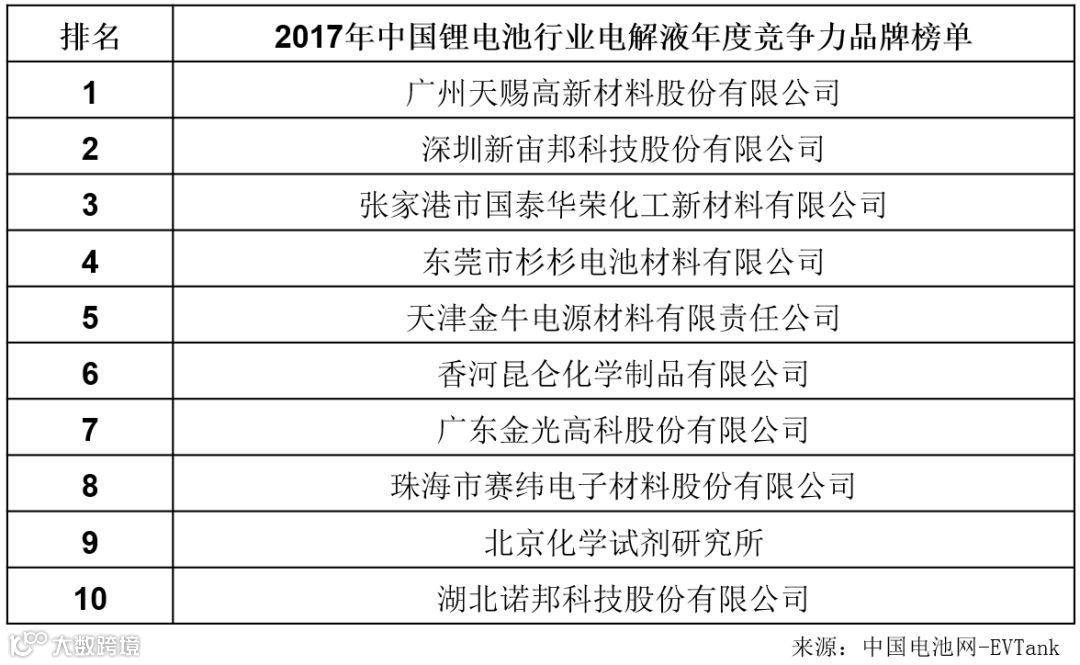 图表10:中国电解液市场份额排名