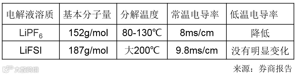 图表4:LiFSI与LiPF6的性能对比