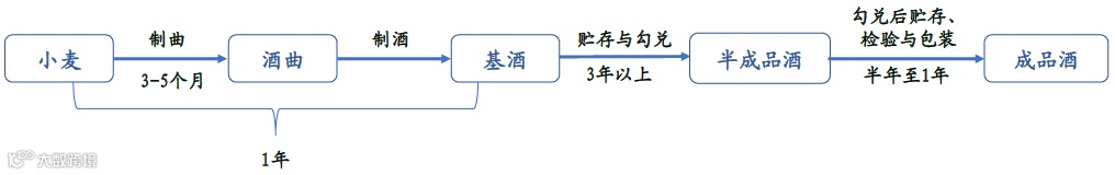 茅台生产周期达5年以上,产能爬坡极慢。茅台具有独特的复杂严苛的酿酒制造环节,单瓶酒的生产周期达5年以上。制酒1年,形成酒基后贮存3年。