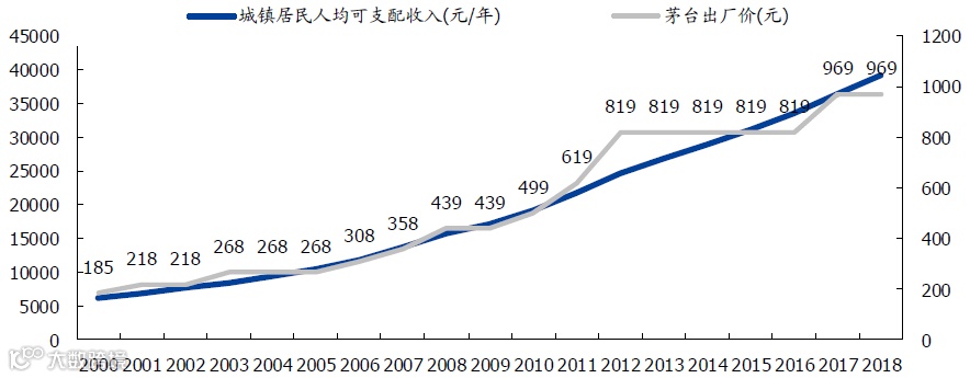 而且,茅台的涨价幅度总体上与城镇居民人均可支配收入增长协同。买茅台,可以说保值增值,抗通胀!
