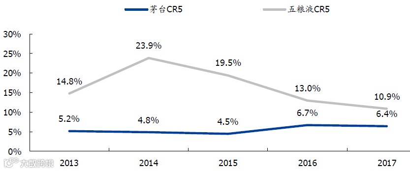 2003-2012年,是白酒行业的黄金十年,在黄金期,茅台采用“小商模式”即对每个经销商进行限量配给,控制经销商的集中度;而五粮液采用的是“大商模式”,即培养大型经销商。“小商模式”有利于茅台掌控经销商,“大商模式”有利于五粮液充分调动经销商的资源、资金。在黄金期,市场景气,“小商模式”和“大商模式”的优劣并不显著。