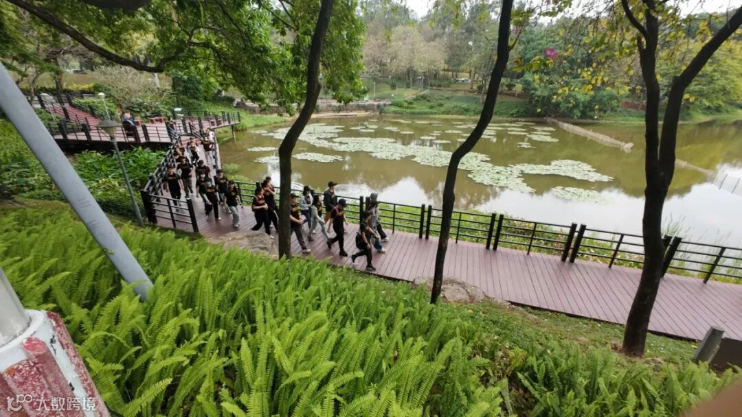 14:30,大部队在麓湖绿道入口完成"人类早期驯服四肢珍贵影像"合照后,正式开启8公里云道挑战!四个打卡点上演了无数名场面: