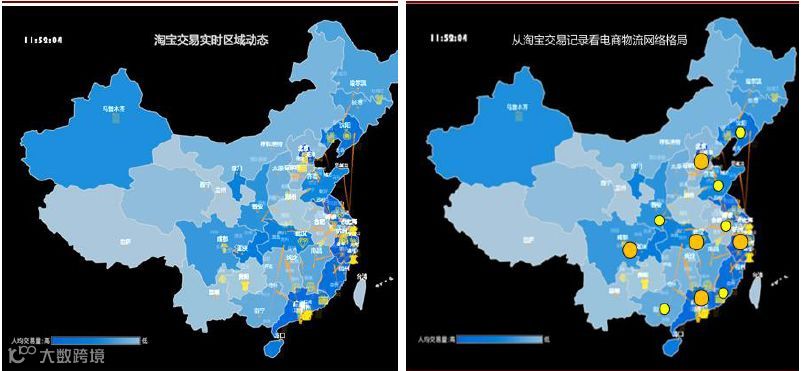 图表:淘宝交易实时区域动态及电商物流网络格局