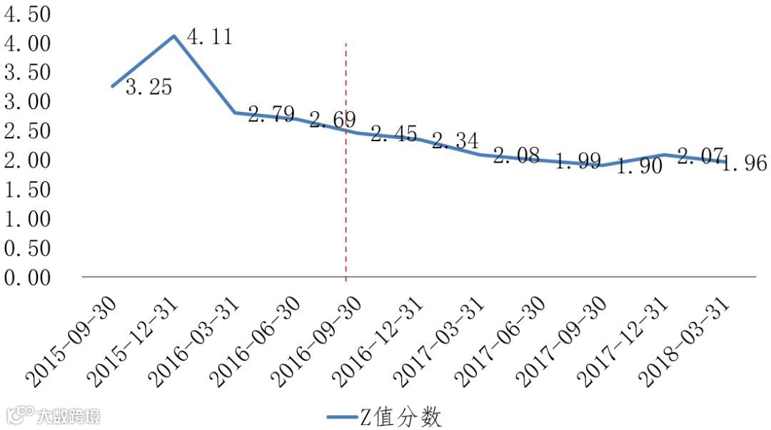 金一文化的Z值其实早在2016年第三季度就预警了。