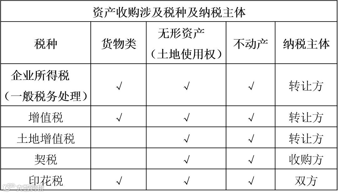 ①资产收购涉及税种