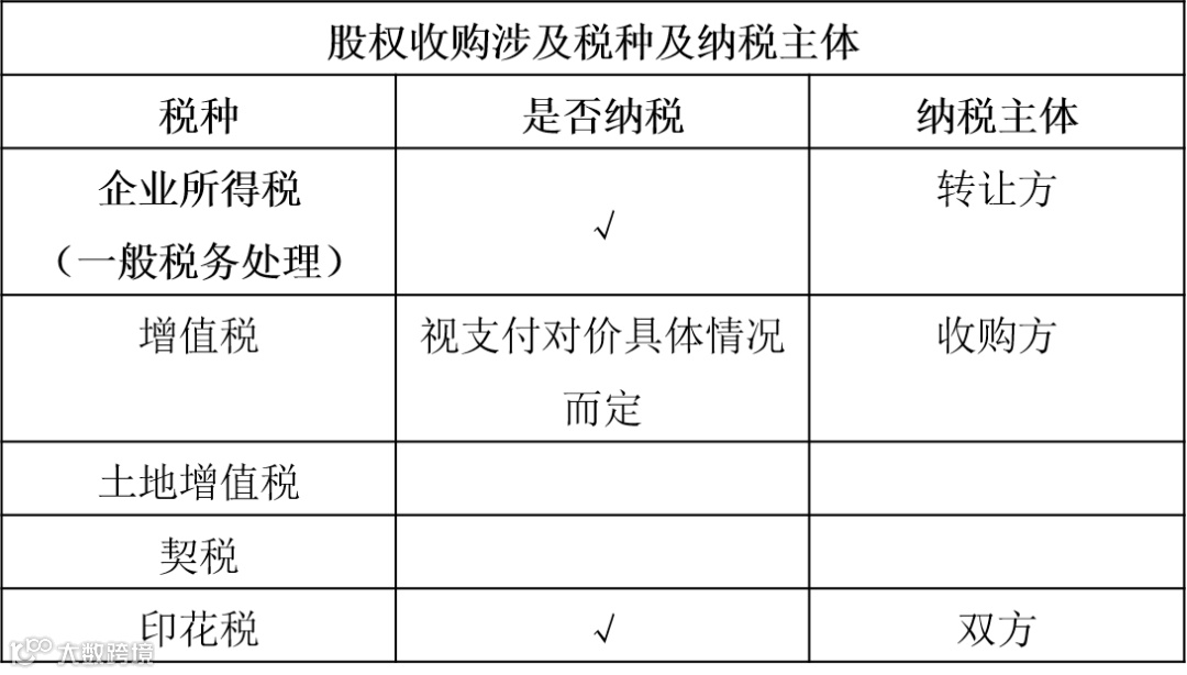 ②股权收购涉及税种介绍