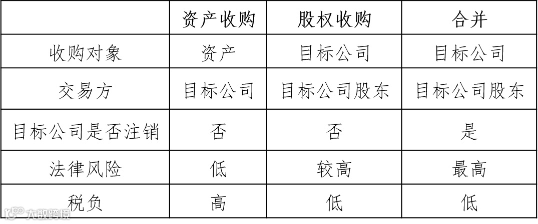 从税务角度,可将并购重组分为三类:资产收购、股权收购和企业合并。